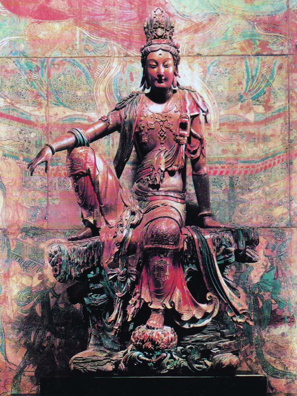 I purchased this poster at the Yasodhara Ashram. The wood statute is "GuanYin of the Southern Sea" and lives at the Nelson-Atkins Museum of Art in the US.