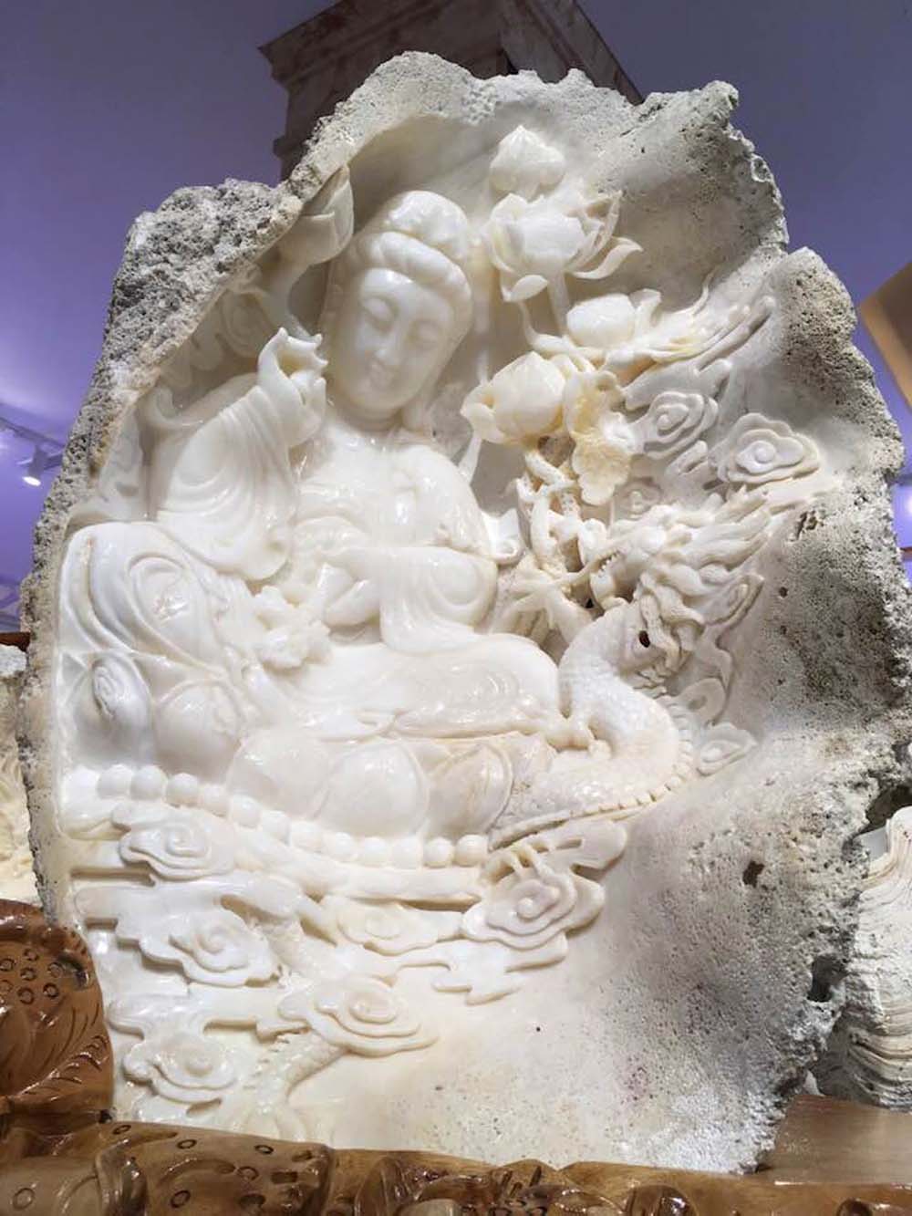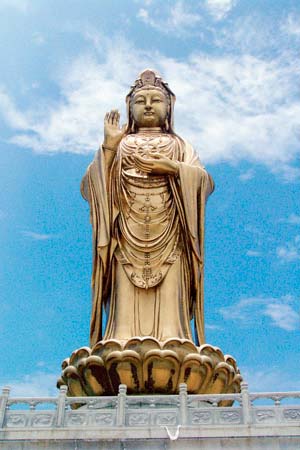 This 13-meter-tall statue is on the Island of Putuoshan in Zhejiang Province of China, which they claim was her earliest residence. The image was in a magazine given to me by a friend who lived in China.